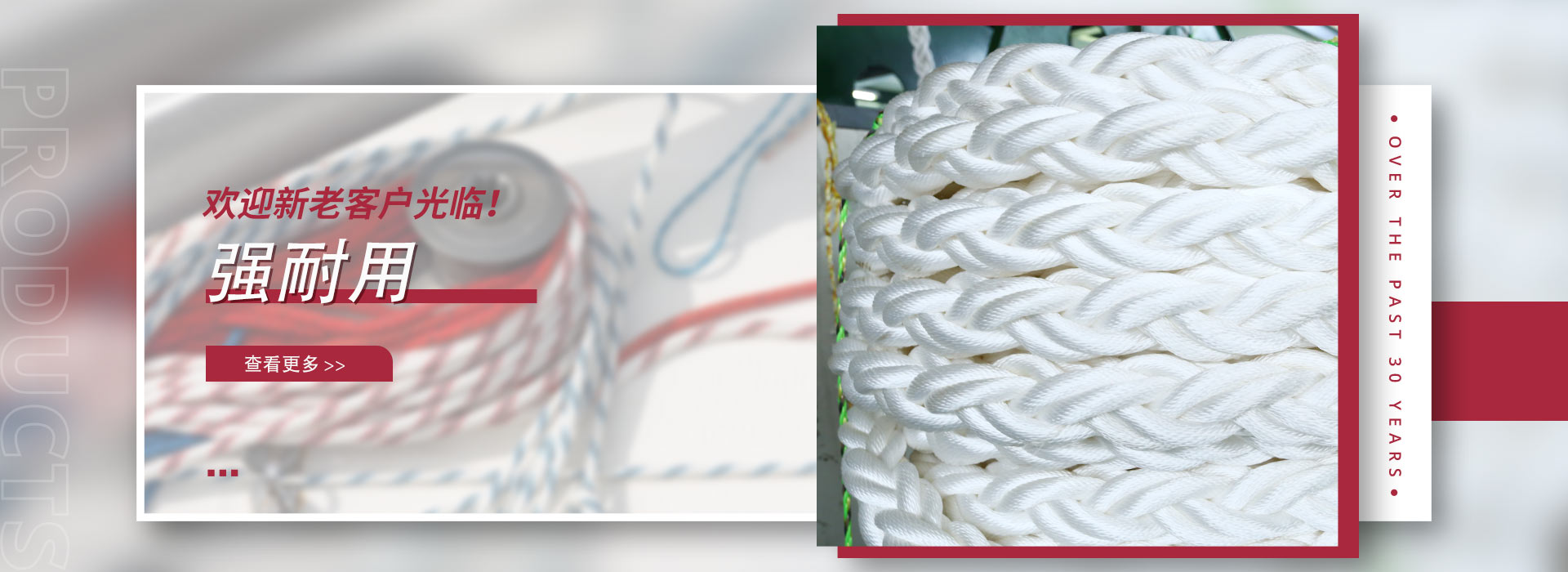 主要产品有锦纶、涤纶、丙纶、高分子聚乙烯、高密度聚乙烯圆丝、丙纶圆丝、丙纶扁丝、芝麻及多材质混纺绳,有三股、八股、十二股、多股、等等。还有用这些绳子编织的各种网。