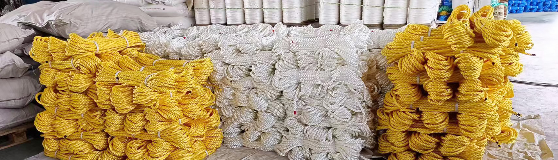 主要产品有锦纶、涤纶、丙纶、高分子聚乙烯、高密度聚乙烯圆丝、丙纶圆丝、丙纶扁丝、芝麻及多材质混纺绳,有三股、八股、十二股、多股、等等。还有用这些绳子编织的各种网。